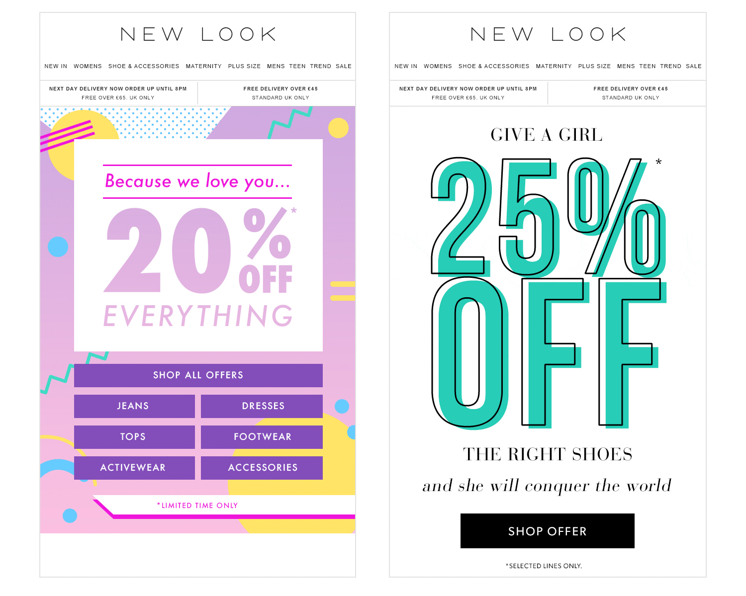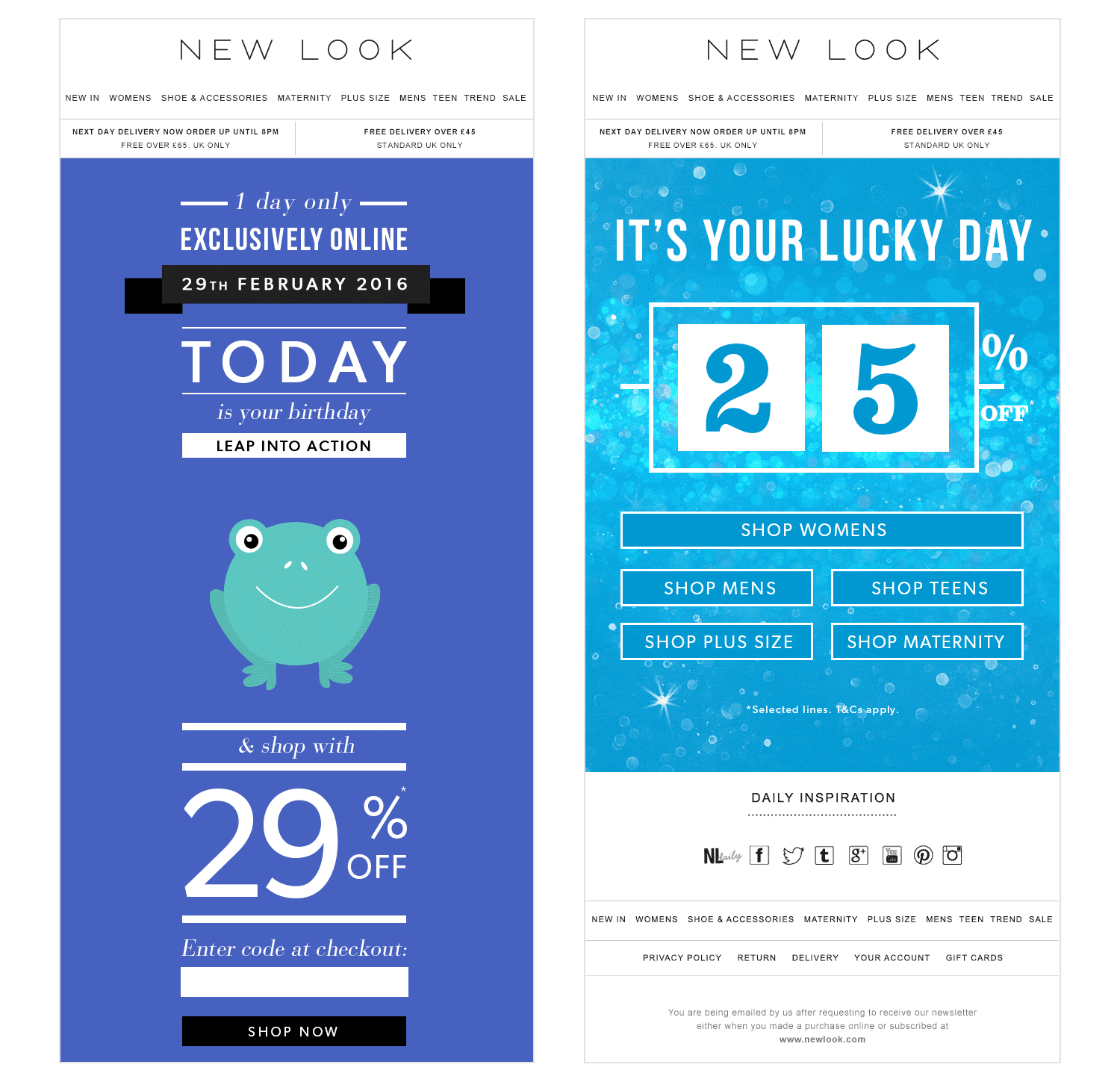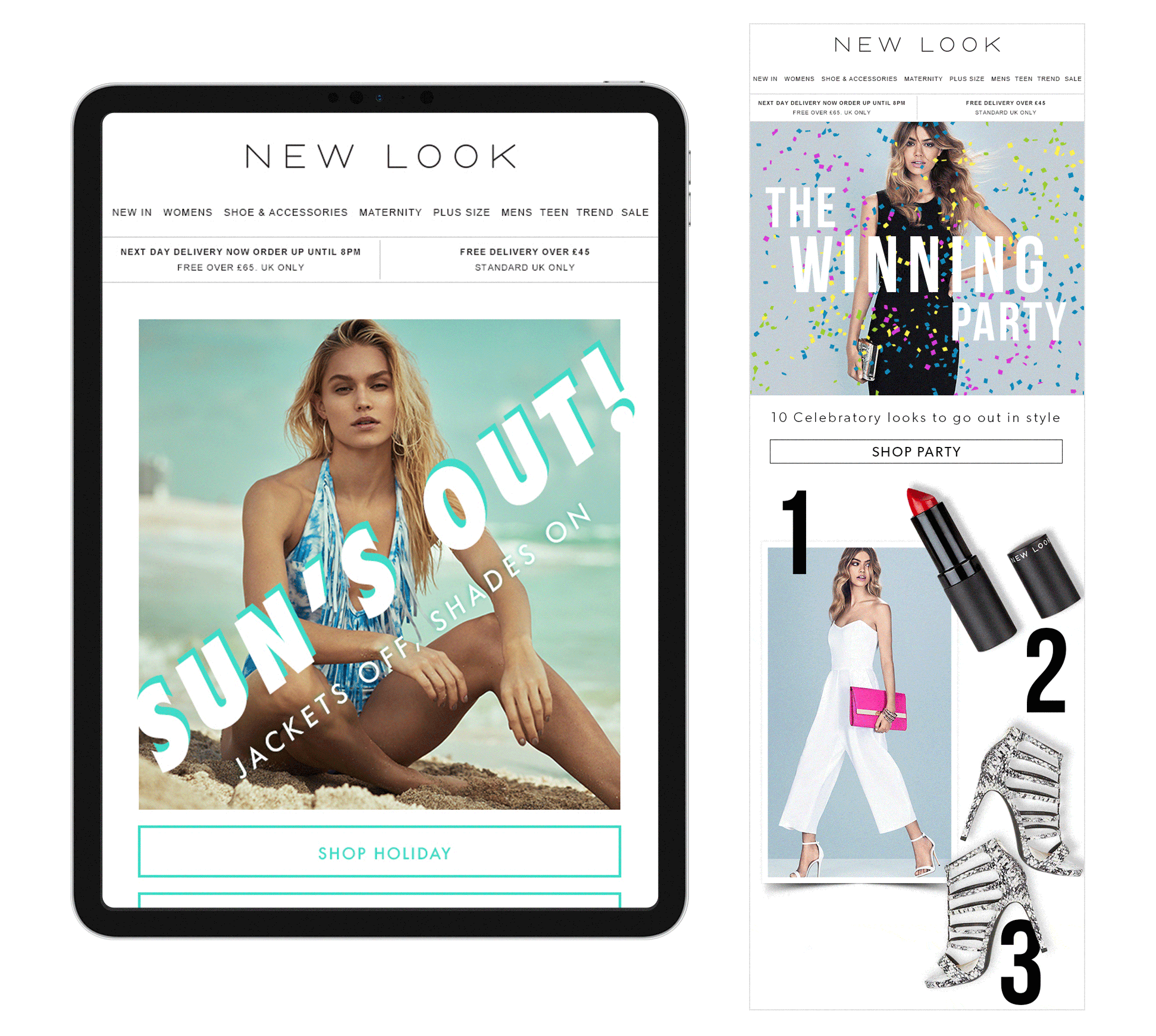I worked at New Look for 3 and a half years, during this time I designed many emails and digital campaigns, working on UI projects and art directing how to wear videos. These are some of the emails I designed for seasonal offers, campaigns and cultural events.